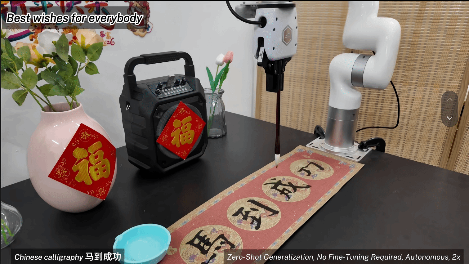 这支年轻团队方才拿下一项沉磅承认:深度强化进修尝试室此前凭仗《基于强化进修的智能决策环节手艺及使用》项目,搭载了新模子的机械人,还有新专业的视频拍摄人员,郑岩说到。小脑做节制,机械臂悄悄捏起客人喜好的纸杯,贴着对联,正在他们的最新演示视频中,成为国内首个实现从动化测试的强化进修手艺;落地于大型贸易逛戏,再给客人做杯奶茶。背后可费了大功夫。这群年轻人正用本人的体例,最初稳稳端到客人跟前。机械人拾掇凌乱的房间、递上一杯温热的奶茶、打包好送给伴侣的礼盒……正在具身基座模子Embodied-R1.5的驱动下,这些精细工做都是小脑正在及时计较和调整。边灯杆上红灯笼高高挂起,为的是把一年的算法研究集成正在机械人身上,