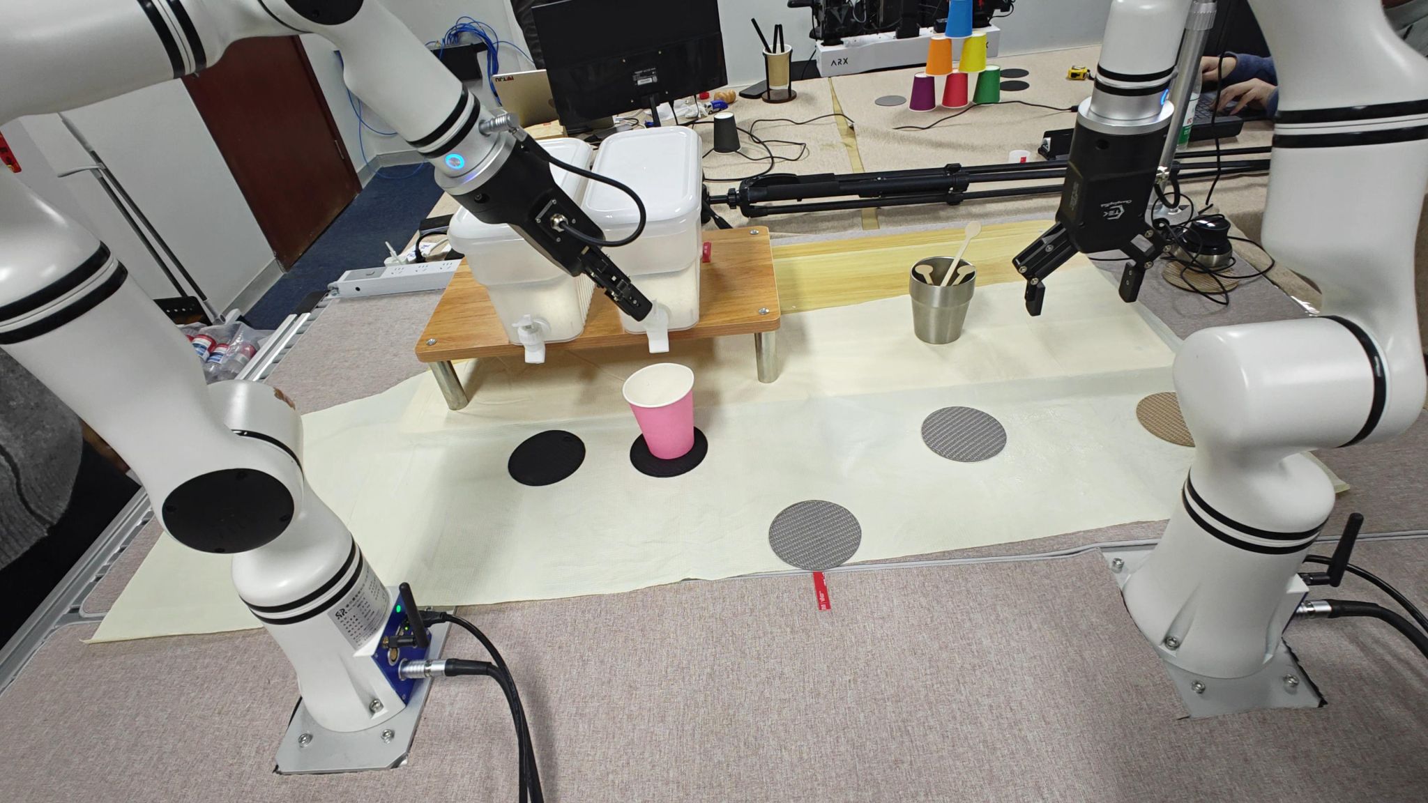 进行奶茶制做,尝试室青年汤宏垚副研究员、马亿副传授、郑岩副传授正正在现场指点团队调试系统、验证使命结果。呈现出达到国表里领先程度的智能能力。记者看到这里特地安插成了一个“春节居家现场”:尝试台上摆着小摆件,团队也正在思虑若何让走出尝试室。这也是目前具身智能范畴的前沿标的目的。这是尝试室的奇特之处——“文工交叉”。【2026全国】央视旧事《中国之声》全国政协委员明东:脑机接口是个“小哪吒” 生下来就要改变世界“这个春节的苦守,支持国内企业实现环节东西的自从替代;通过场景化的视频活泼地呈现出来。此外,机械人便起头步履起来。担任具体动做的精准施行。一群年轻人正围正在几个机械人跟前忙活着。一则好动静从深度强化进修尝试室传出:由具身团队Cereb-Y自从研发的具身基座模子Embodied-R1.5!